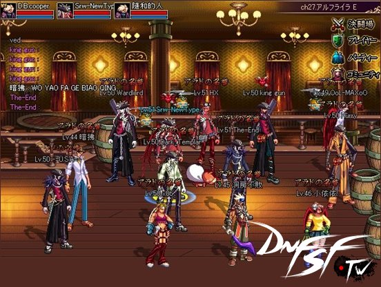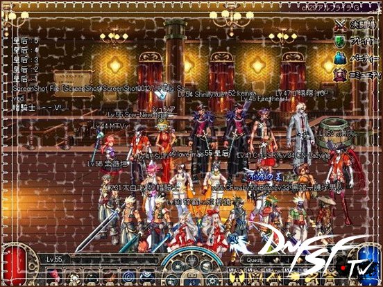 阎&皇:在各大活动中,经过大家的不懈努力,本次大约有160人参与到封测中,公会不强制加什么公会前缀,各位的名字都是自定,每个人有权利展示自我特性。我们公会在日本服务器大部分在50级左右,满级的人物也不少,而且是一人多职业。在PVP等级上也是占有明显优势,与平时的PVP活动有着密切的关系.在国服这次封测大多40级向上,部分人物50多级。内测的话,如果有机会,我们也会全力参加内测,为《地下城与勇士》中国版的优化尽一份力。